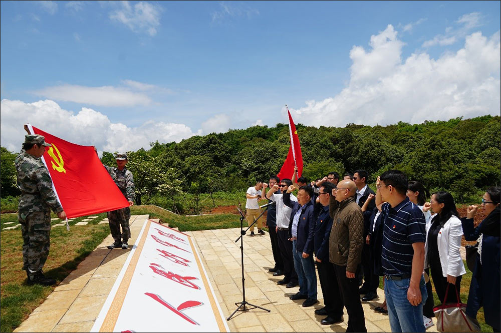 下午,黨員們來(lái)到圭山紅色教育基地,接受革命傳統(tǒng)教育和愛國(guó)主義教育。面對(duì)巍峨的圭山,矗立在半山腰的“圭山革命紀(jì)念塔”行三鞠躬,表達(dá)對(duì)先烈們的崇高敬意。在“一支人民的軍隊(duì)”紀(jì)念廣場(chǎng)前聆聽了石林圭山地區(qū)各族人民,在中國(guó)共產(chǎn)黨的領(lǐng)導(dǎo)下,成立“一支人民的軍隊(duì)”,建立圭山紅色革命根據(jù)地,打響云南人民武裝反抗國(guó)民黨反動(dòng)統(tǒng)治第一槍的光輝事跡,讓黨員們體會(huì)到勿忘歷史的真意,愛國(guó)之情油然而生。隨后,書店集團(tuán)黨委副書記、總經(jīng)理李東華同志帶領(lǐng)大家,面對(duì)鮮紅的黨旗,重溫入黨誓詞,堅(jiān)定黨員理想信念,增強(qiáng)“守初心踐承諾”的決心和信心。