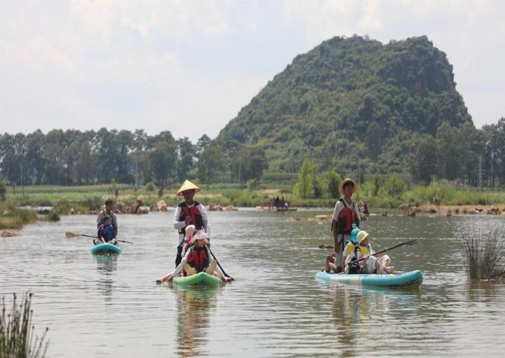 此次研學(xué)活動路線串聯(lián)普者黑多個景點(diǎn)和宣教中心,寓教于樂、融學(xué)于趣。參研學(xué)生在專業(yè)教練的指導(dǎo)下,沉浸式體驗水上運(yùn)動的魅力。走進(jìn)水田,體驗抓魚釣蝦,體悟自然饋贈的野趣生機(jī),領(lǐng)悟彝族文化里“普者黑”的含義。在普者黑彝族火把節(jié)的狂歡氛圍中感受民族文化風(fēng)情,到濕地宣教中心探究濕地生態(tài)的奧秘,參觀“云上鄉(xiāng)愁書院”,尋味書香,了解鄉(xiāng)土文化,激發(fā)閱讀興趣。