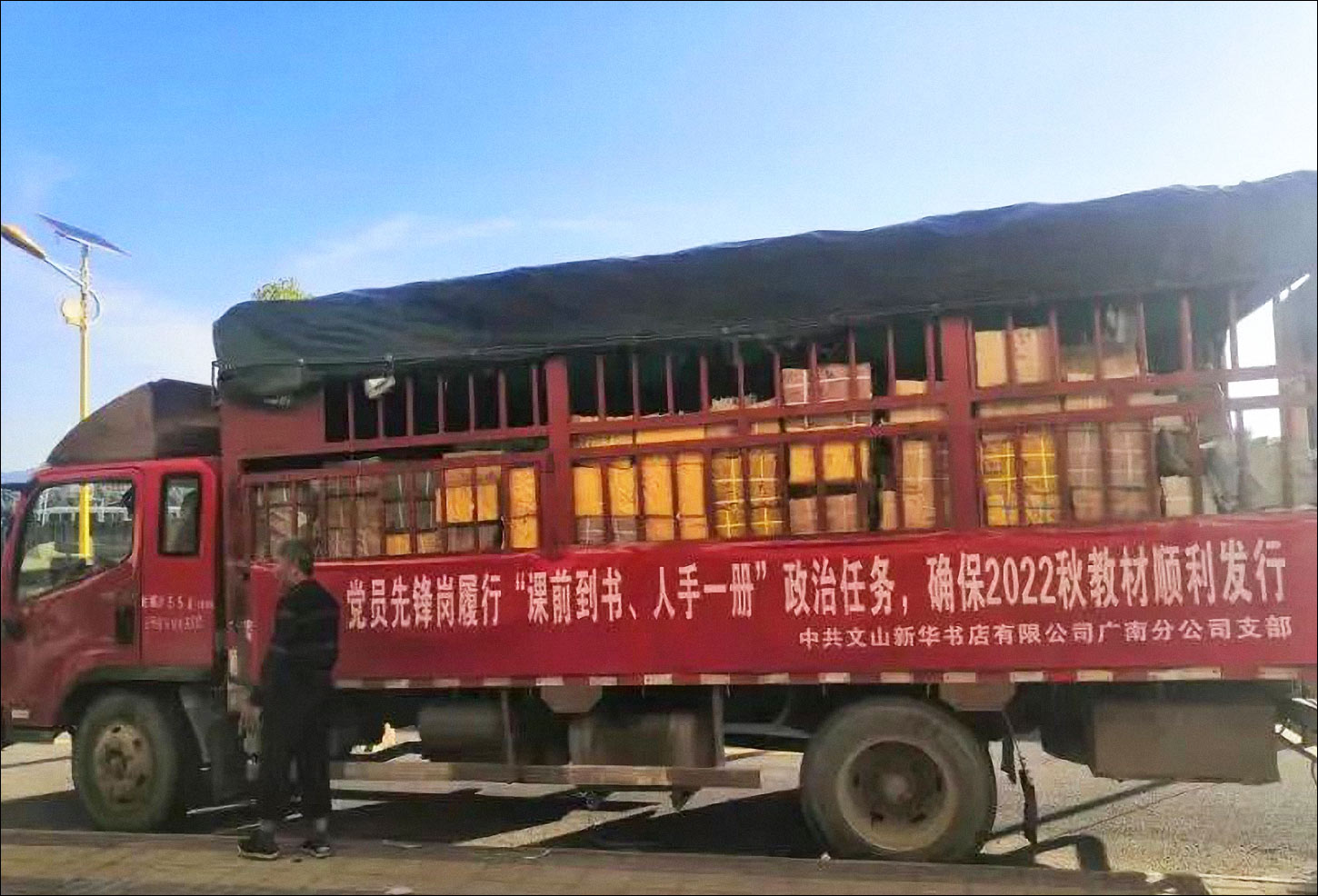 “課前到書 人手一冊(cè)”的政治任務(wù)對(duì)于云南新華人來(lái)說(shuō),不但是齊心協(xié)力克難關(guān)、分秒必爭(zhēng)搶進(jìn)度,還是不計(jì)代價(jià)守承諾。在文山,部分鄉(xiāng)鎮(zhèn)學(xué)校來(lái)回路程200多公里,即使只是一個(gè)科目的課本到貨,也第一時(shí)間安排配送。在隴川,把教學(xué)用書發(fā)行與黨史學(xué)習(xí)教育結(jié)合在一起,納入“我為群眾辦實(shí)事”清單,充分發(fā)揮共產(chǎn)黨員的先鋒表率作用,以我是黨員我?guī)ь^的責(zé)任擔(dān)當(dāng),投身到發(fā)行第一線,克服發(fā)行人員短缺的問(wèn)題,按時(shí)按規(guī)、保質(zhì)保量的將5300件教學(xué)用書、42萬(wàn)冊(cè)書籍配送至全縣90所學(xué)校。
