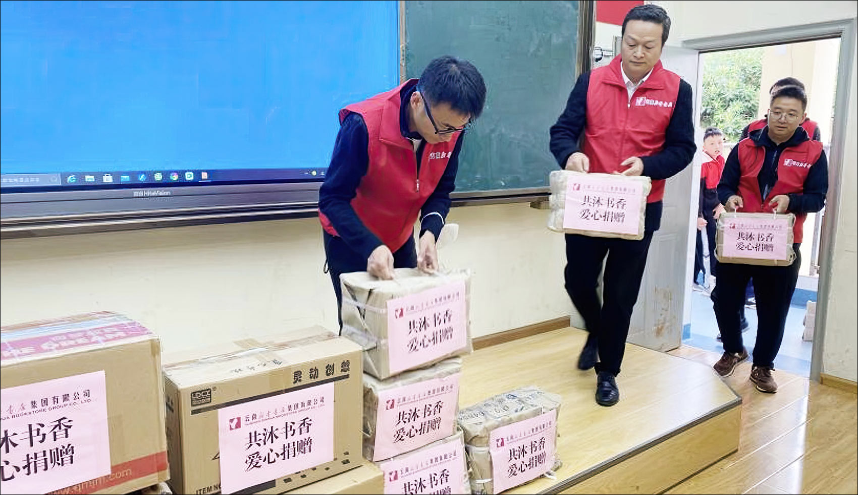 近日,書店集團組織黨員志愿者代表到北京路小學開展 “共沐書香 愛心捐贈”活動,為學生們捐贈圖書、作業(yè)本等學習用品。