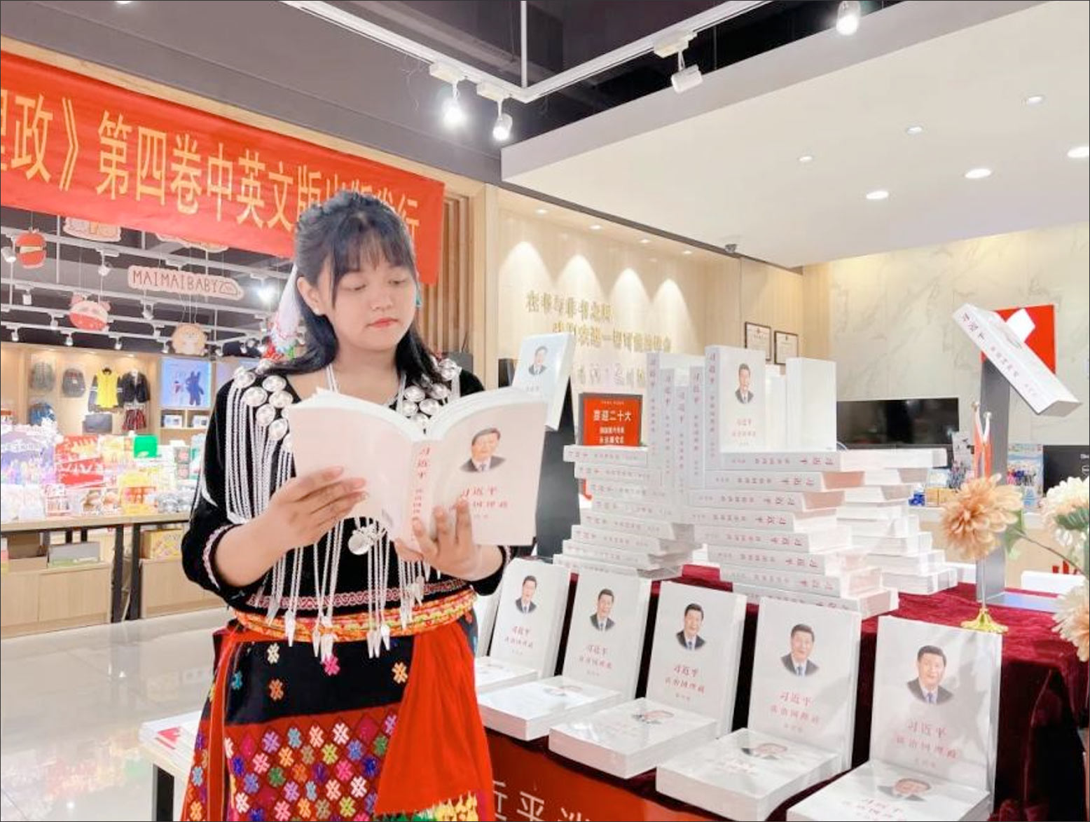目前,全省16個州市129個縣153家連鎖門店、174家“云上鄉(xiāng)愁書院”、部分大學(xué)校園書店在顯著位置設(shè)置專柜(專架)對《習(xí)近平談治國理政》第四卷集中展示、重點宣傳。