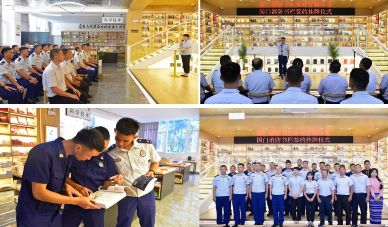 近日,德宏新華書店隴川分公司與隴川縣消防救援大隊在隴川書城(國門書社)舉行“國門消防”書欄簽約儀式,雙方簽訂《國門消防書欄合作協(xié)議》后為“國門消防”書欄揭牌。