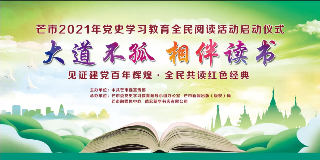以大道不孤、相伴讀書——“見證建黨百年輝煌·全民共讀紅色經(jīng)典”為主題的芒市2021年黨史學(xué)習(xí)教育全民閱讀活動在新華書店德宏書城正式啟動,迎接第26個“世界讀書日”,慶祝黨的百年華誕。