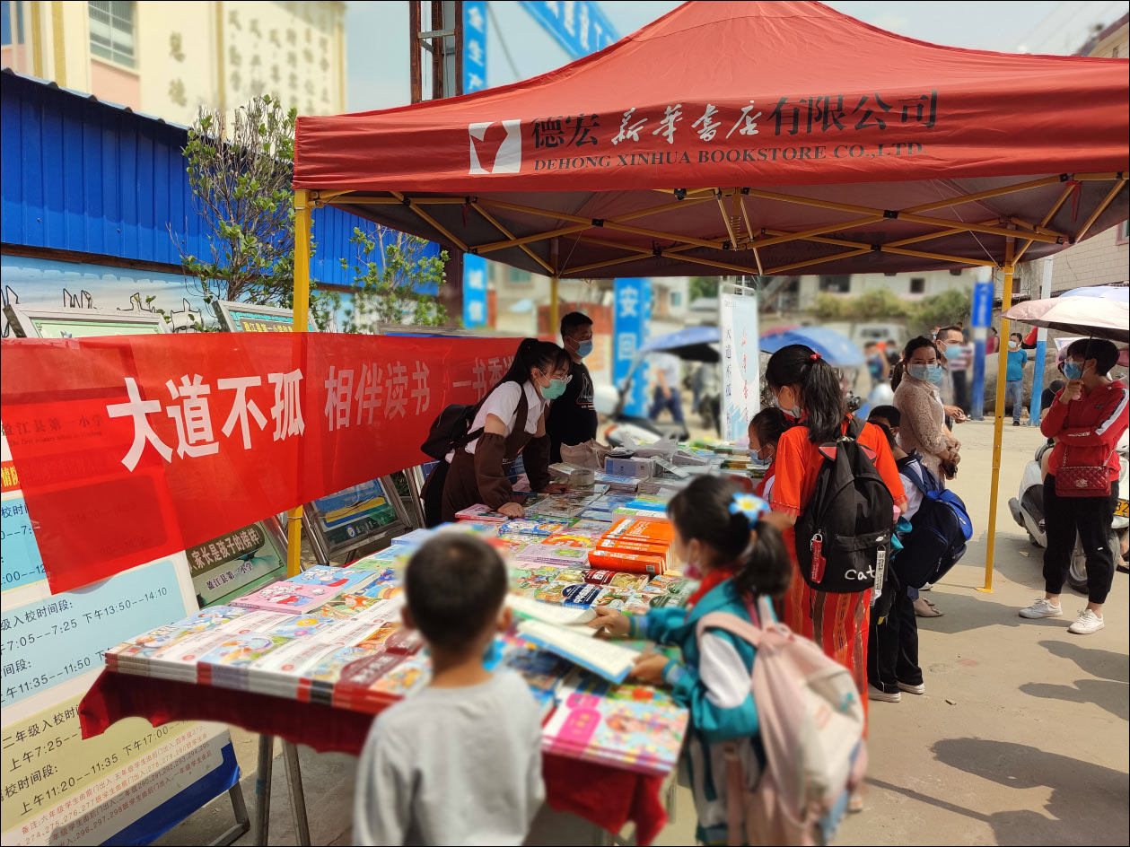 黨史教育進(jìn)校園,書香作伴潤心田。為了更好地營建書香校園,在師生中倡導(dǎo)多讀書、讀好書的學(xué)習(xí)風(fēng)尚,盈江書城與盈江縣第一小學(xué)開展了2021年“翰墨書香筑國夢,讀行天下慶黨史”第26個世界讀書日暨慶祝建黨100周年活動啟動儀式。在書香進(jìn)校園活動中,厚植愛國主義情懷,將希望的種子播撒在學(xué)生心間,讓書香伴隨他們健康成長,在盈江開出一片爛漫紅色。